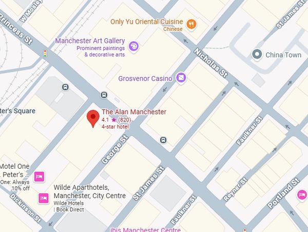 The Alan Hotel, Manchester is perfectly located in the heart of the city, making it simple and convenient to reach by public transport. Manchester Piccadilly and Manchester Oxford Road train stations are both within easy walking distance, offering excellent national connections. If you're travelling by tram, the nearest Metrolink stop is St Peter’s Square, just a short stroll from the venue, with frequent services running across Greater Manchester. Numerous bus routes also serve the city centre, dropping you close to the conference location for an easy onward walk.